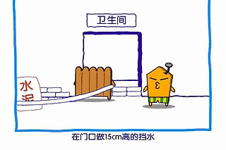 原因2:衛(wèi)生間門洞處防水未上返、外返30cm。