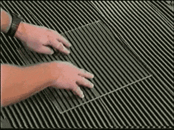 然后,拿起瓷磚向下按壓,并均勻用力上下揉壓。我們透過玻璃可以清楚的看到瓷磚膠非常平均的分布在了玻璃下方。
